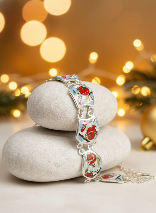 Winter Pomegranate Bracelet — Minanqari Enamel & Silver