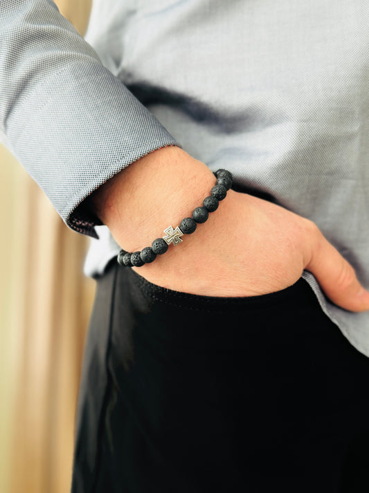 Lava Stone Bracelet with Cross – Volcanic Protection