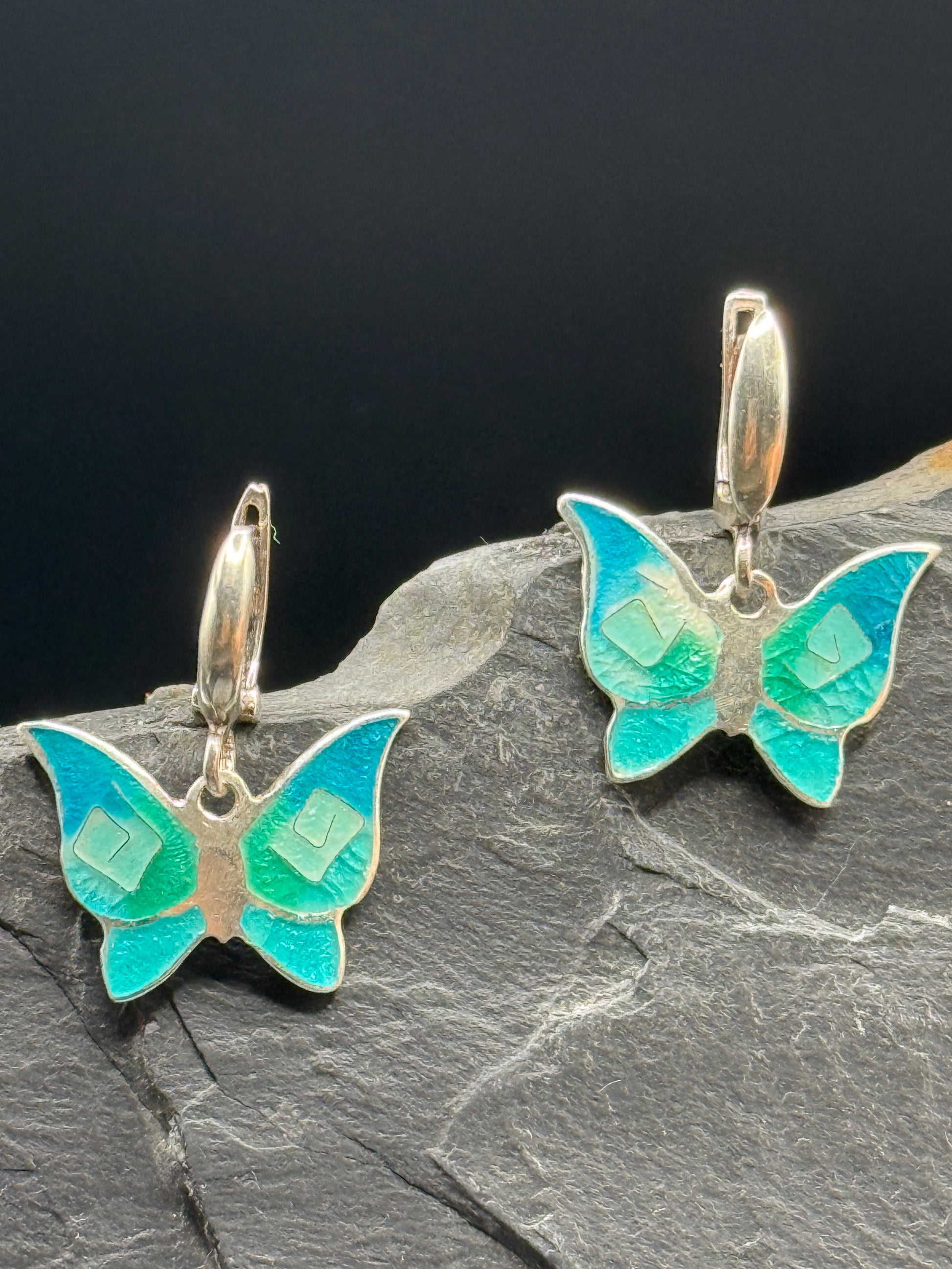Õrnad ja elurõõmsad liblikkõrvarõngad sümboliseerivad muutumist, vabadust ja ilu. Türkiissinise ja rohelise emaili toonid toovad värskust ja harmooniat, muutes need rõõmsaks aktsendiks igale välimusele.