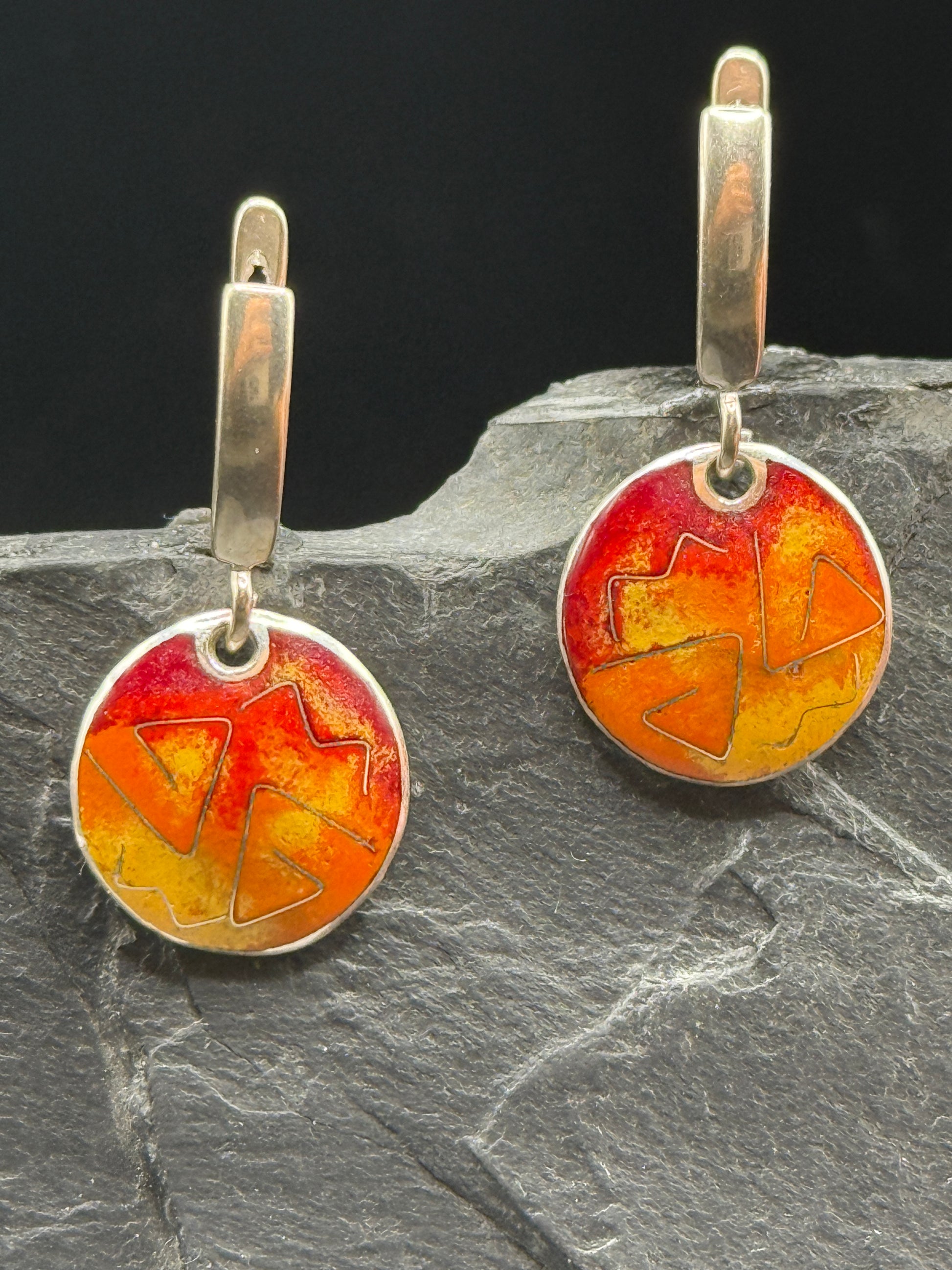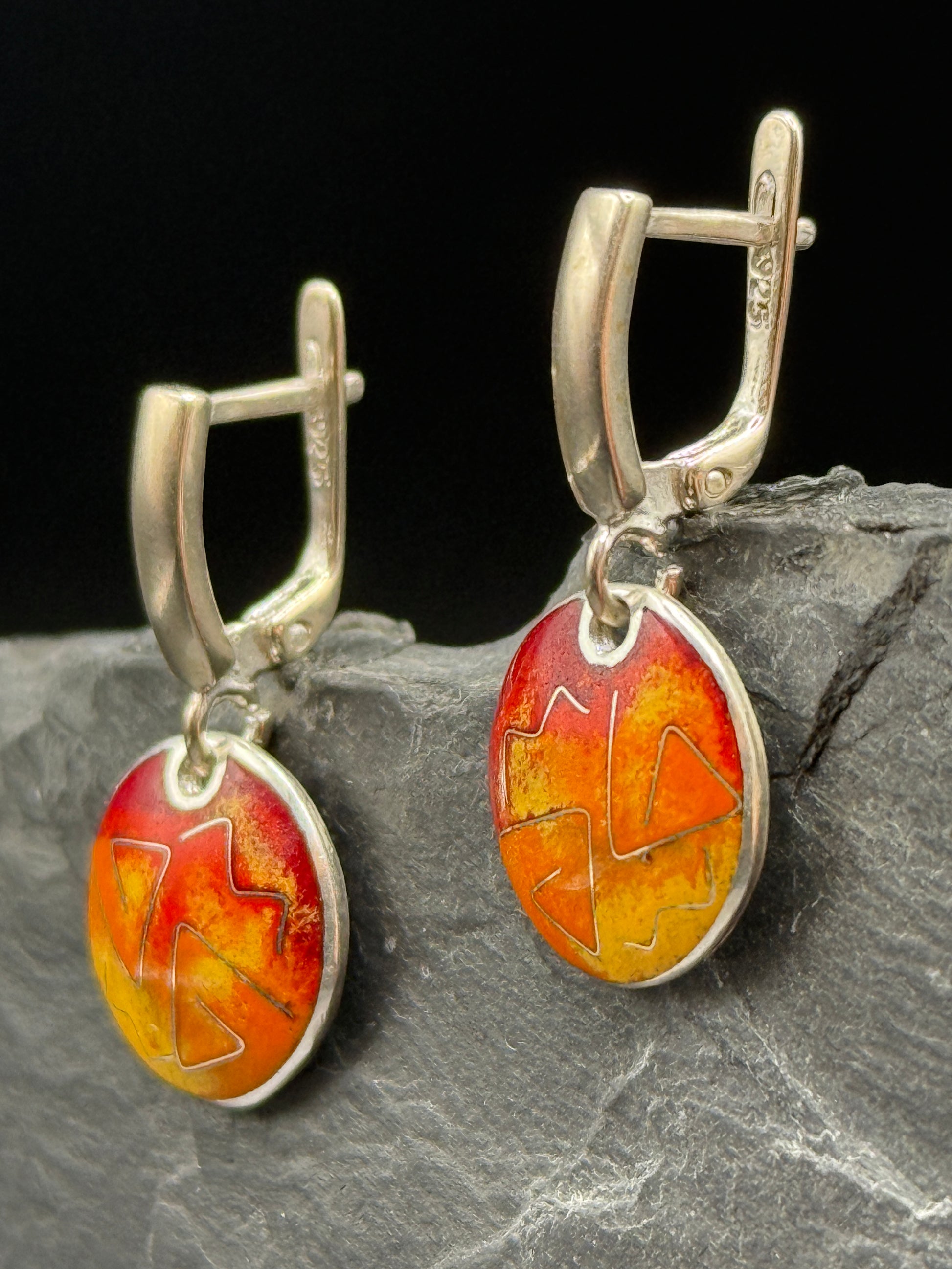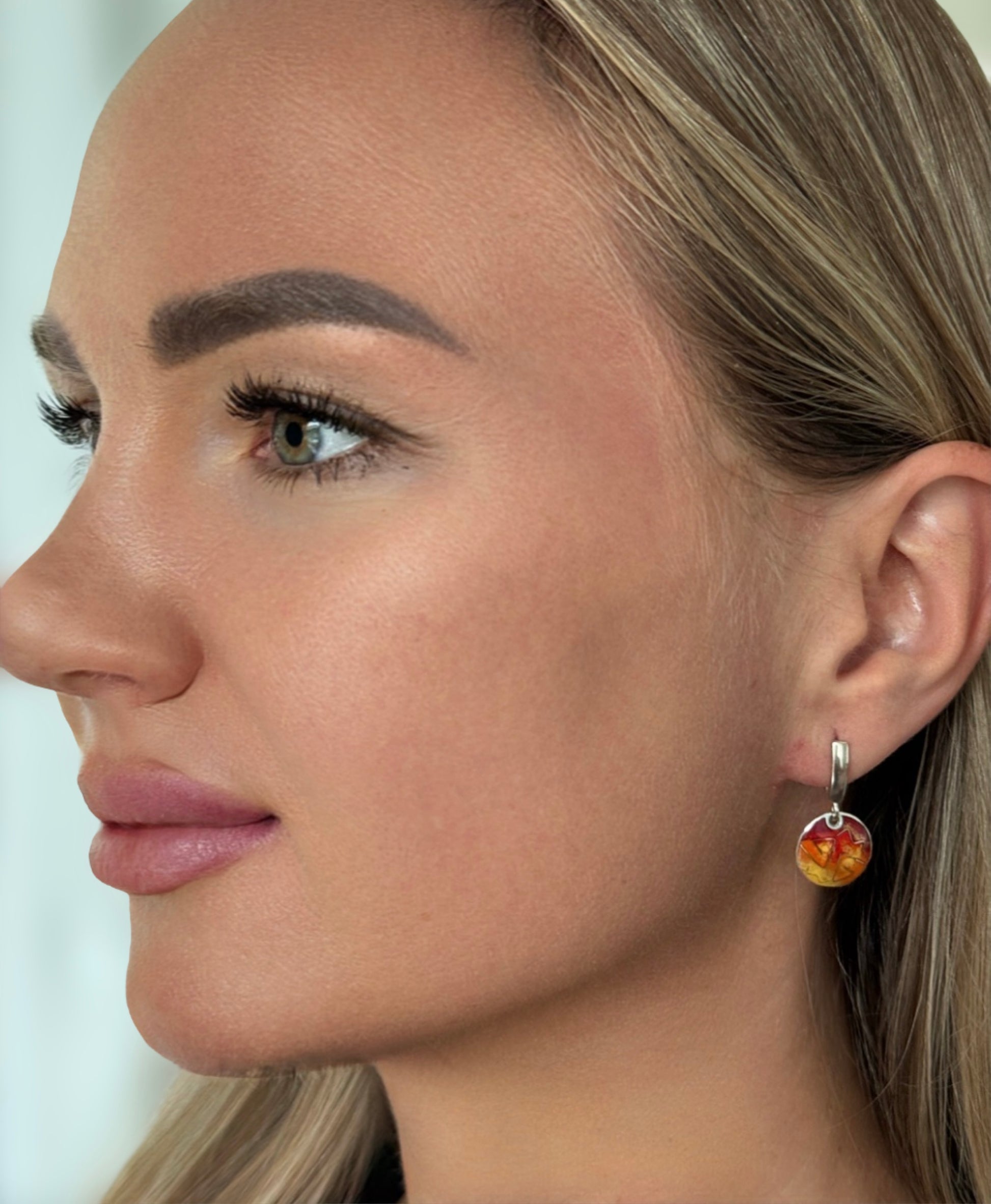 Need erksad kõrvarõngad jäädvustavad punaste ja kuldoranžide toonide tulise tantsu – värvid sümboliseerivad kirge, jõudu ja elujõudu. Punast seostatakse sageli armastuse ja energiaga, kuldsed toonid aga kehastavad soojust, rõõmu ja loovust.