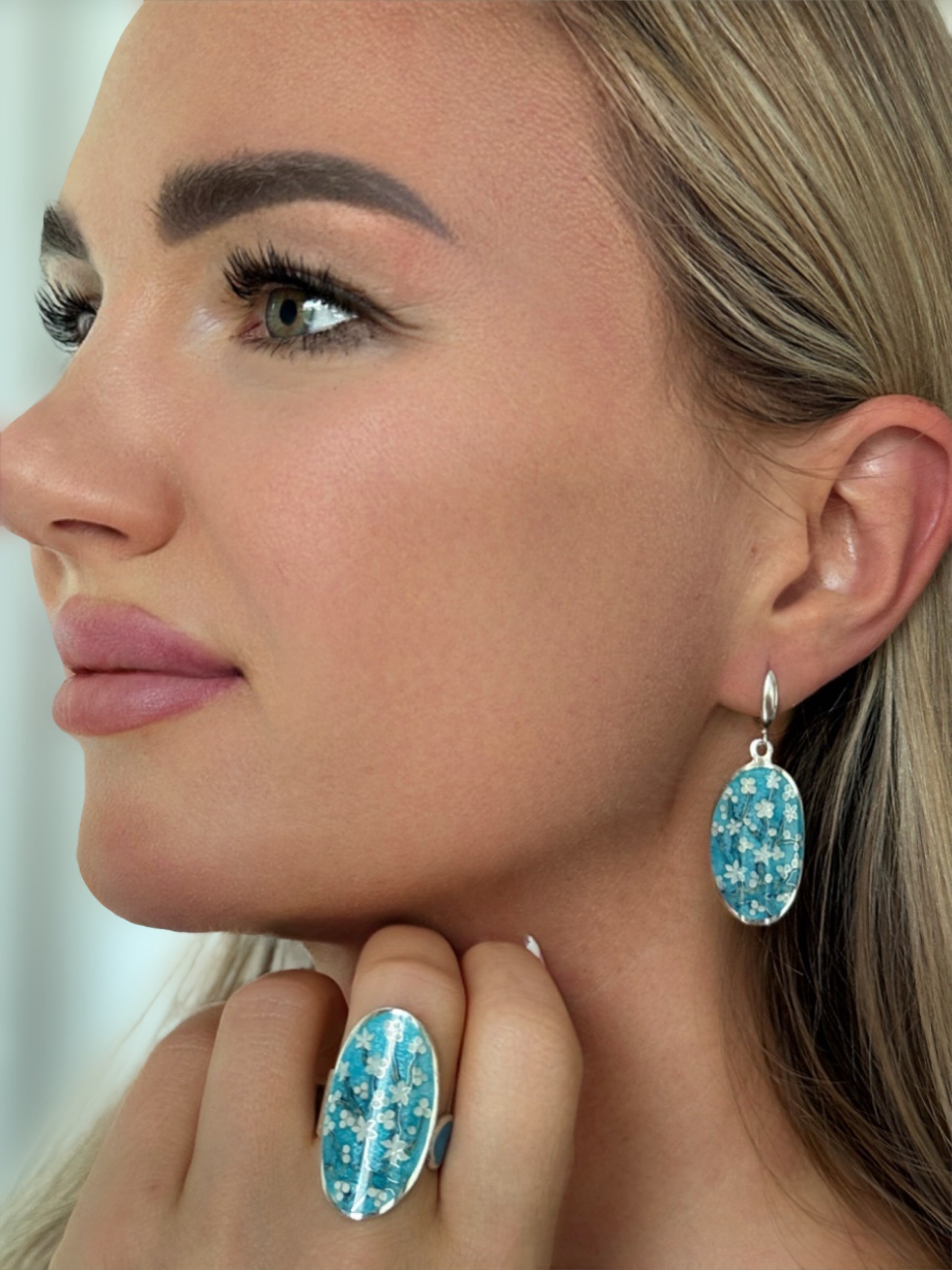 Vincent van Goghi loomingust inspireeritud „Mandliõis“ , see graatsiline ehtekomplekt peegeldab kunstniku ajatut nägemust uuenemisest ja lootusest. Iga õrn kroonleht on käsitsi vormitud hõõguva valge emailiga pehmel taevasinisel taustal, kasutades iidset Gruusia minanqari tehnikat.