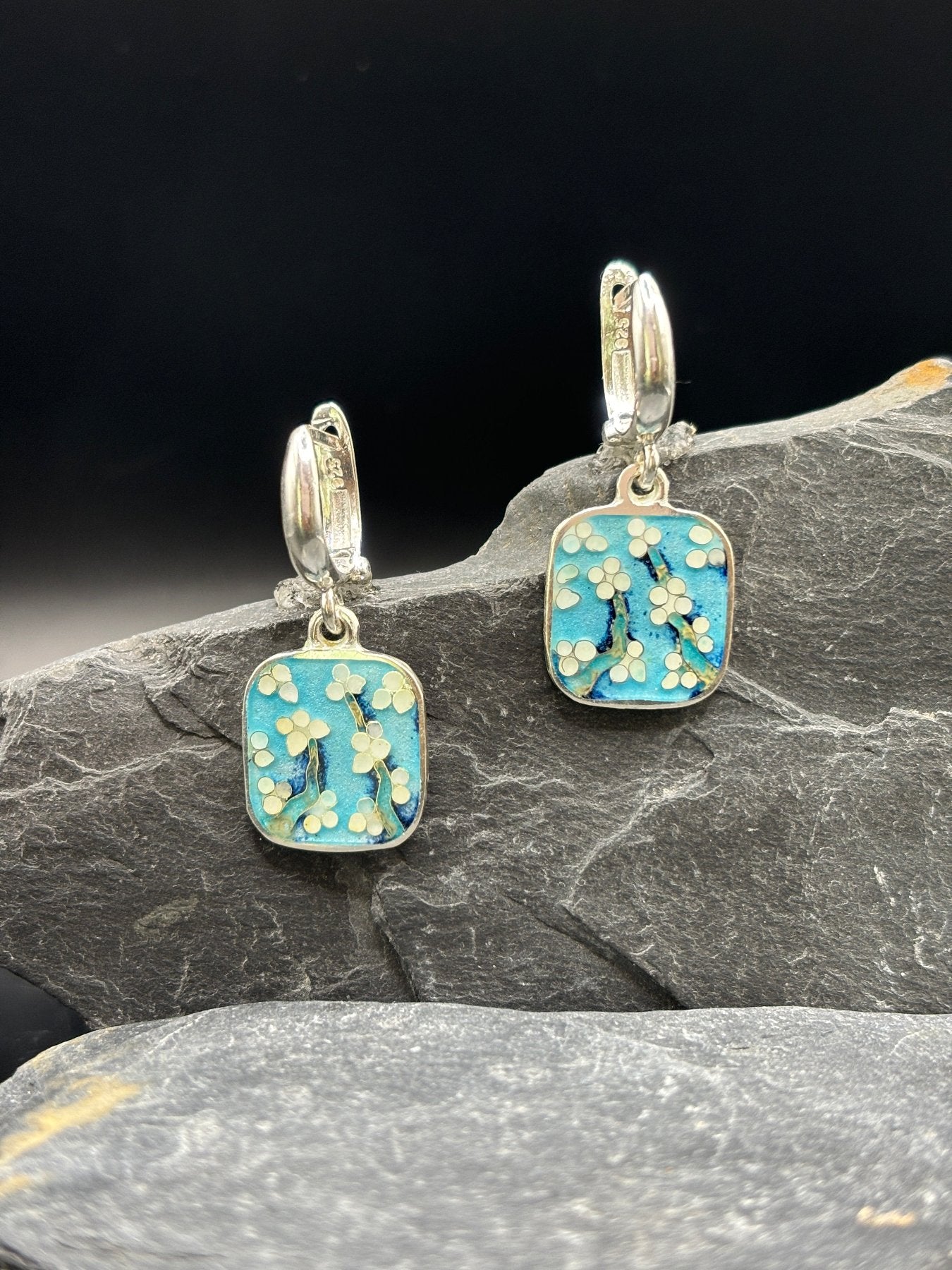 Earrings made by hand in the technique of Minanqari by Van Gogh's painting "Flowering branches of almonds".