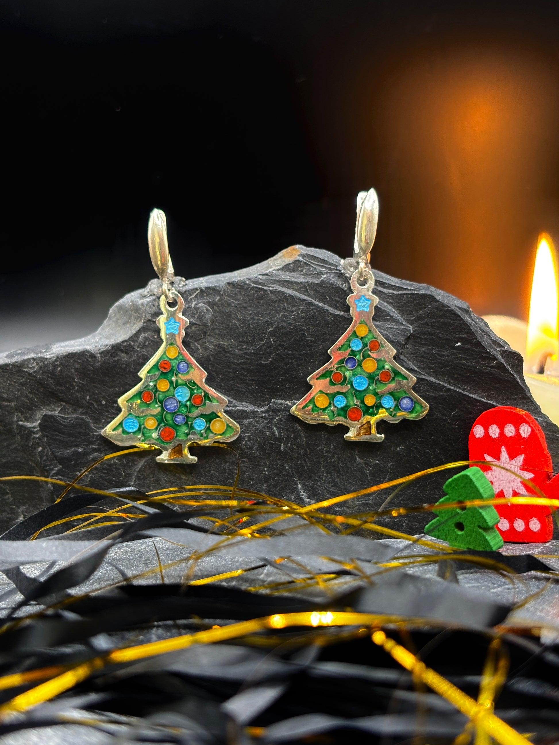 Earrings "New Year's Tree". Handmade Minanqari technique.