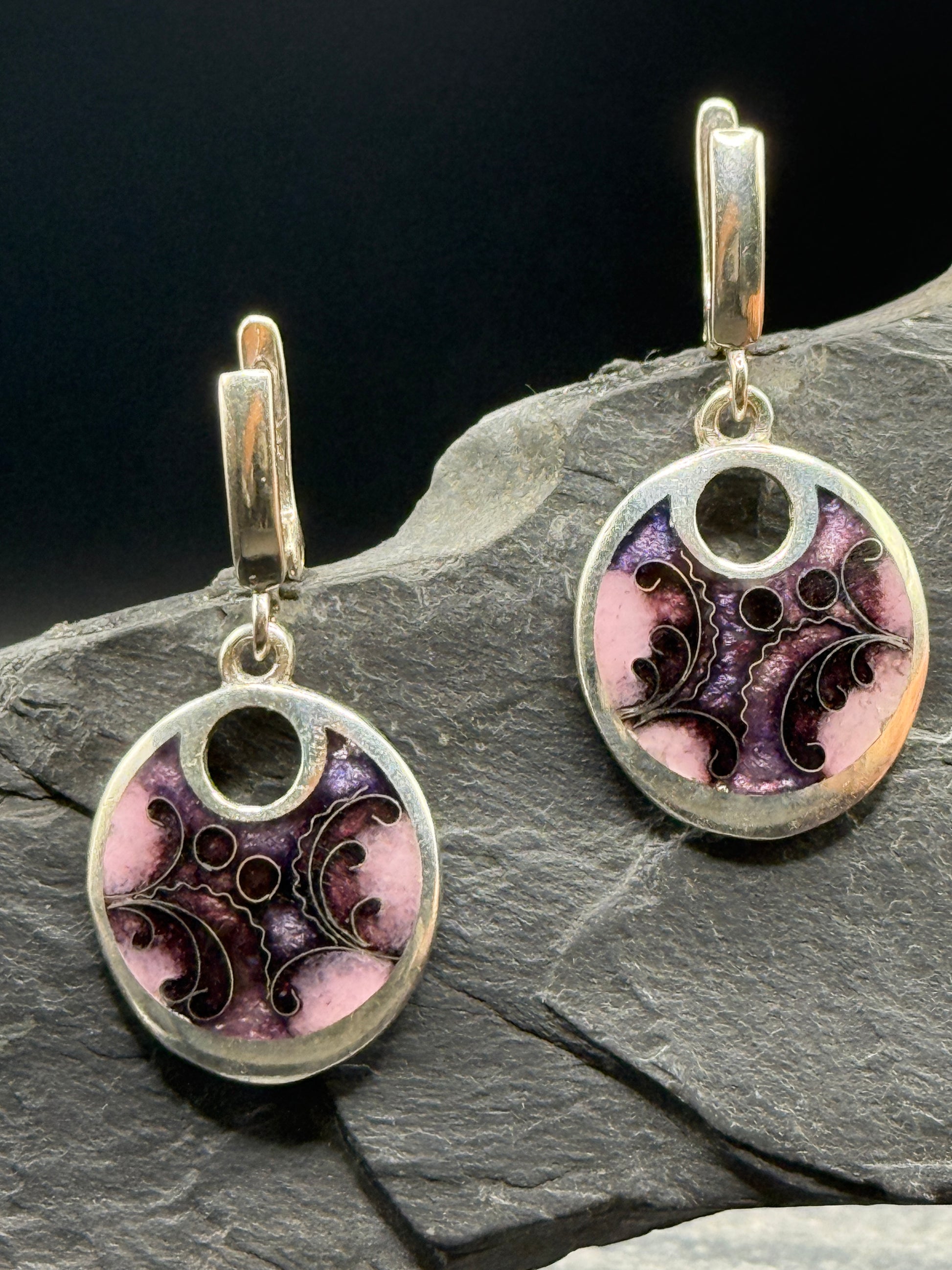 Created with the ancient Georgian Minanqari enamel technique, these earrings embody mystery, femininity, and timeless artistry.