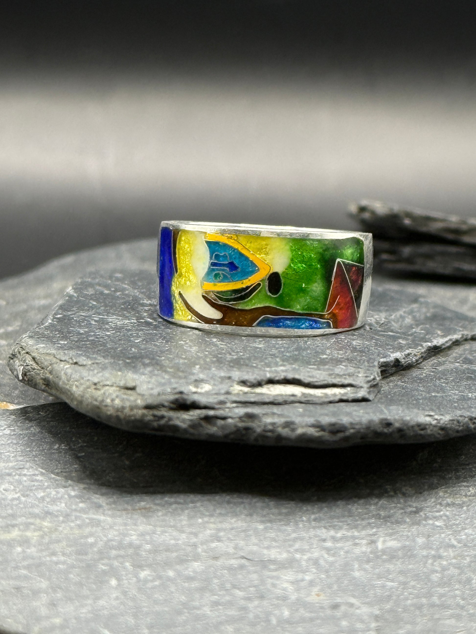 This striking handmade ring is inspired by Salvador Dalí’s surrealist masterpiece “The Persistence of Memory.” Crafted using the ancient Georgian Minanqari (cloisonné) enamel technique, it brings a painterly abstraction of time, memory, and perception into wearable art.