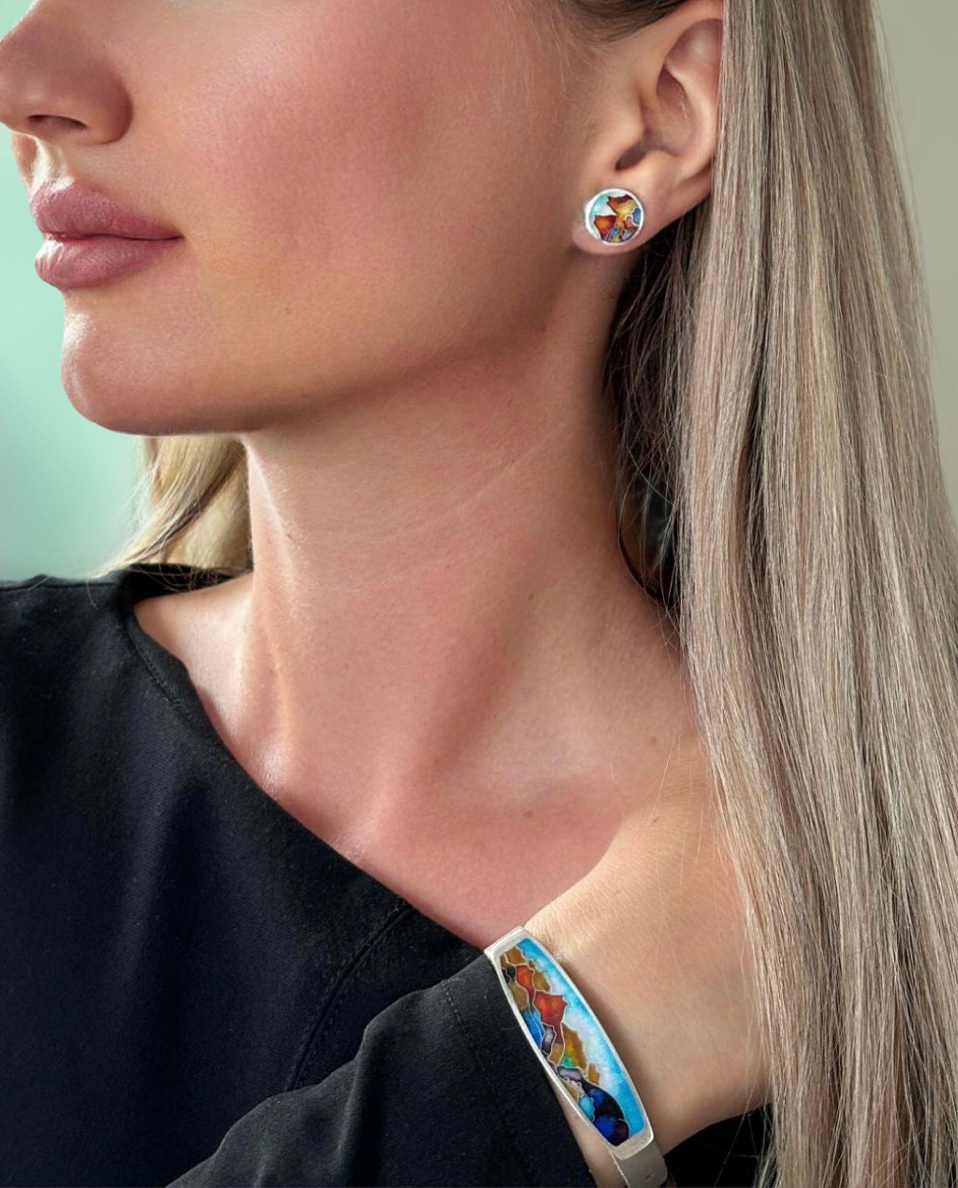 Earrings: Diameter 14mm, Bracelet: 14x53mm, Strap: 1x23cm.