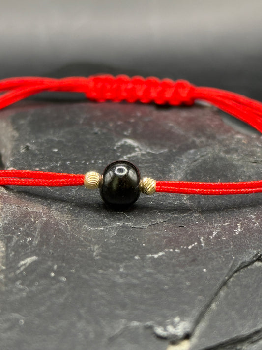 Браслет из красной нити цвета гагата и золота – защитный талисман