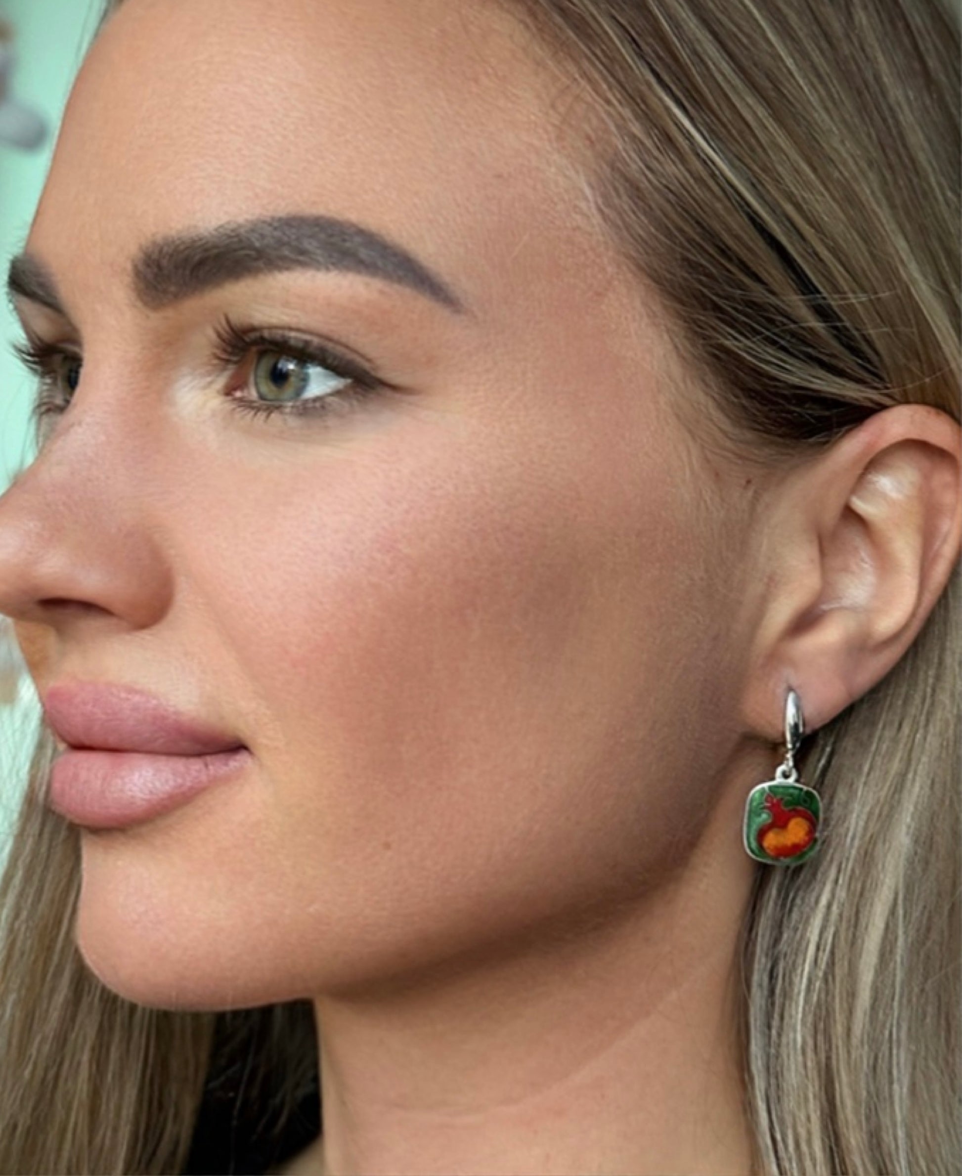 Эти нежные серьги запечатлевают Гранат — вечный грузинский символ любви, плодородия и изобилия . Насыщенно-красная эмаль тепло светится на фоне серебра, а тонкие зеленые акценты оживляют дизайн.