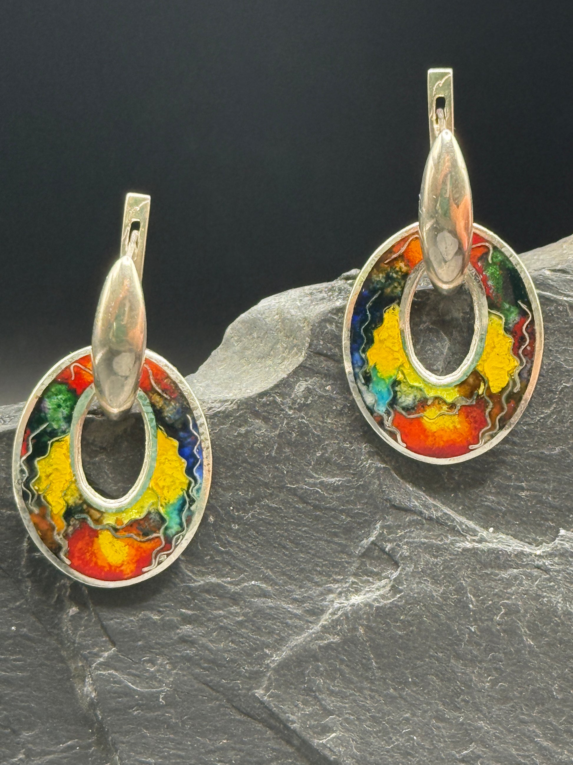 Эти элегантные серьги — яркая дань уважения картине Клода Моне «Дом художника. Вид из розария» , переосмысленная в грузинской технике минанкари (перегородчатая эмаль).