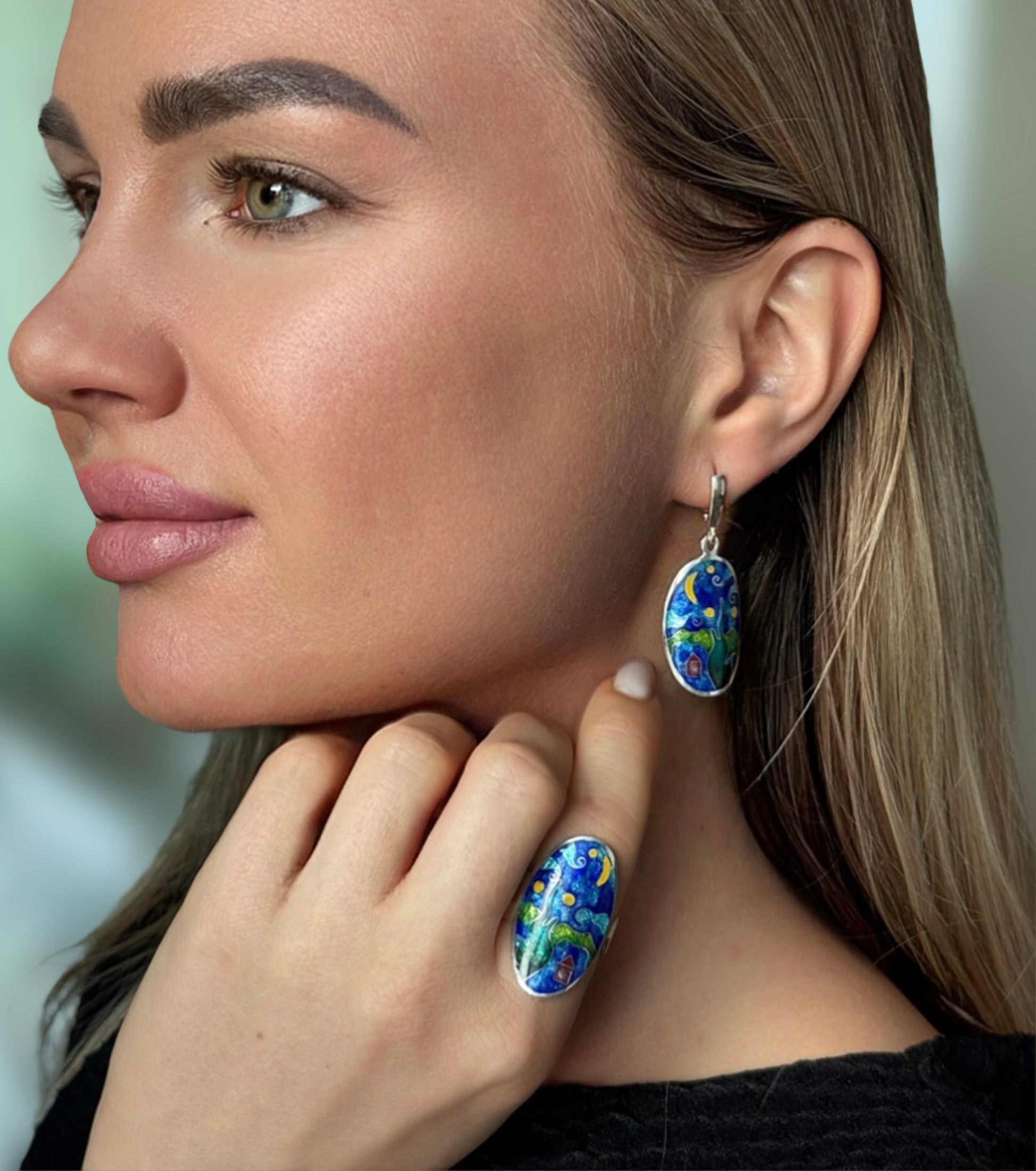 Ювелирные украшения «Золотая звездная ночь» – Минанкари, серебро и эмаль.