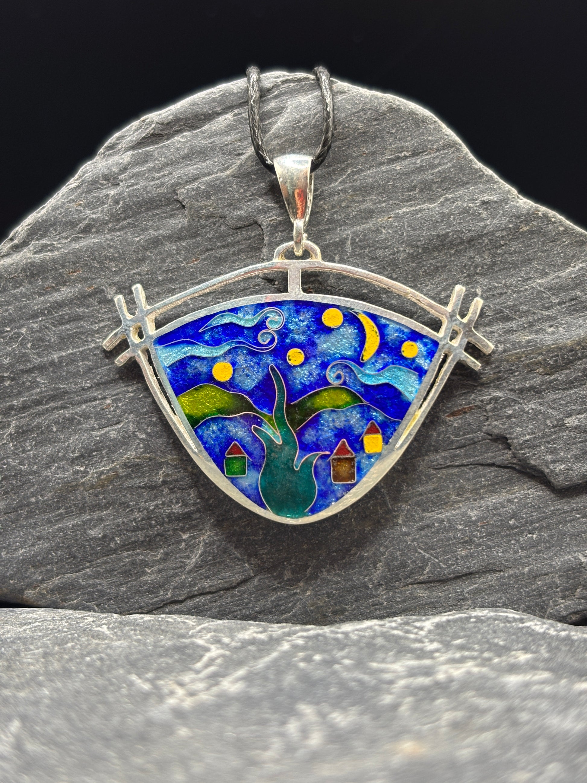 Подвеска. По мотивам картины Ван Гога "Звездная ночь". Ручная работа в технике минанкари.