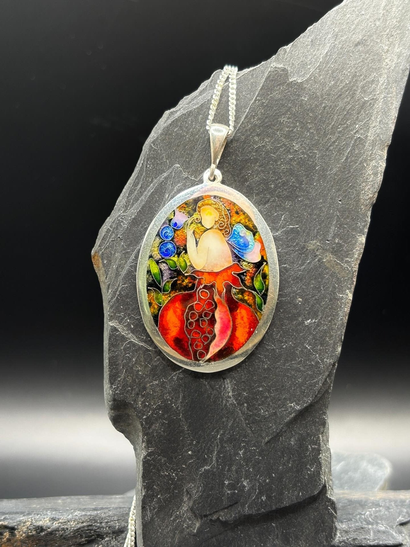 Очаровательная подвеска «Гранатовое сердце, душа феи» создана мастером в технике минанкари из Грузии.
