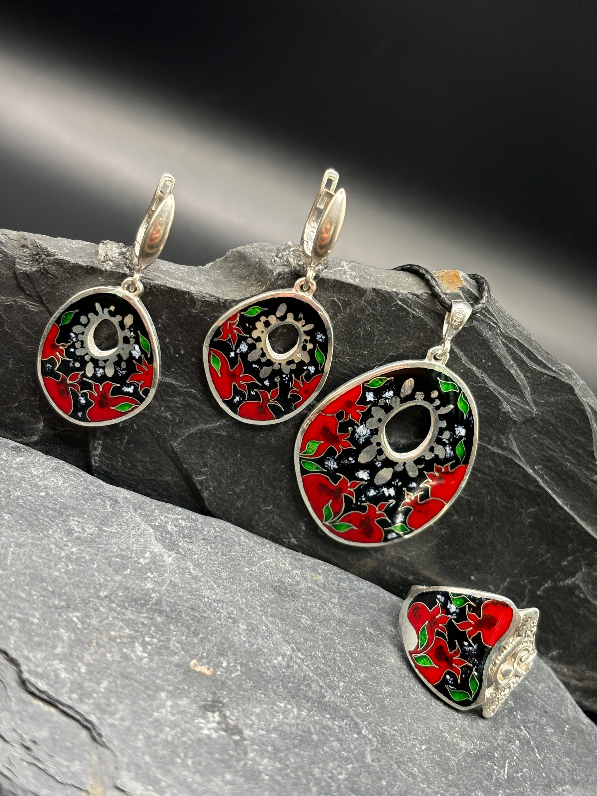 Серебряный набор ручной работы, выполненный в технике минанкари.